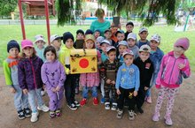 Такую деятельную экологическую игру сегодня с детьми провёл Шалун (весёлый сказочный эколёнок) совместно с детьми на территории детского сада.