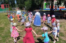 Знакомство с мордовской культурой «В гостях у бабушки Оли» 02.07.2021 В рамках мероприятий, посвященных Году родных языков и народного единства дети младшей/средней группы познакомились с культурой мордовского народа. Дети отправились в гости к бабушке Оле, которая познакомила с предметами быта - прялкой и веретеном, крынкой, вышивкой на полотенце, а также поиграла в мордовскую народную игру "Продажа лаптей". Цель данного мероприятия знакомство с культурой мордовского народа, воспитание положительного отношения к людям разных национальностей.