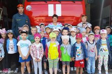 В рамках ознакомления дошкольников с профессией пожарного состоялась экскурсия в пожарную часть, где дошколят встретил работник Тиханин А.С., который рассказал и показал, чем вооружен пожарный для борьбы с огненной стихией, для чего служит тот или иной предмет из многочисленного пожарного снаряжения. В ходе этих интересных встреч дети получили массу полезных сведений о профессии пожарного и особенностях этой важной работы; повторили и закрепили свои знания в области пожарной безопасности.