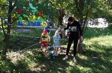12 июля в детском саду прошло познавательно-музыкальное развлечение на тему "Приключение в лесу", в котором приняли участие дети всех возрастных групп. Развлечение началось с прочтения письма от Феи природы, в нём она пригласила детей в гости. И вот на "поезде" дети отправились в лес. На лесной поляне дети слушали пение птиц, отгадывали загадки о животных. Дети с удовольствием играли в такие игры как "Собери букет", "Бабочка и цветок", принимали активное участие в конкурсах - эстафетах, закрепили правила поведения в лесу. В гости к ребятам приходили сказочные персонажи: Старичок - лесовичок, Турист, Сорока, они создали атмосферу веселья, радости и хорошего настроения.