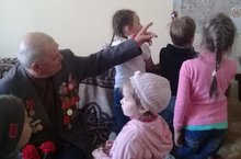 В преддверии Дня Победы воспитанники детского сада «Берёзка» посетили на дому участника Великой Отечественной войны Авдонина И.Н. Ребята поздравили Ивана Николаевича с наступающим праздником, пожелали крепкого здоровья, бодрости духа и оптимизма, подарили ему цветы и сладкий пирог. В свою очередь Иван Николаевич рассказал, детям о своем боевом пути, о том, как он защищал город-герой Ленинград. Свой рассказ сопровождал показом на карте тех мест, где проходили бои. Дети с интересом и гордостью рассматривали награды, полученные защитником Отечества.