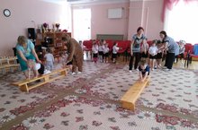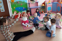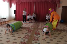 16 марта в рамках акции «Весенняя неделя добра – эстафета добрых дел # ДОБРЫЙ ТАТАРСТАН» в первой, второй младшей группе прошло физкультурно-оздоровительное мероприятие «За здоровьем в детский сад». Самая главная ценность у каждого человека – это здоровье, поэтому в детском саду уделяется большое внимание воспитанию здорового ребенка. Развлечение проходило в несколько этапов: сначала проведена была музыкальная разминка. Затем дети поделились на две команды «Солнышко» и «Лучики». В гости к детям пришли зайка и мишка. Они помогли пройти спортивные эстафеты: «Медвежата», «Пронеси – не урони», «Тоннель», «Сороконожка». Вместе танцевали веселый танец зайчат «На полянке зайцы танцевали». Развлечение прошло со спортивным задором, шумно и очень весело.