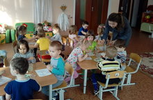 15 марта во второй ранней- первой младшей группе был проведен тематический день на тему «Овощи». В течении дня с детьми проводили беседу, игры – занятия , рассматривали картинки и иллюстрации с овощами ,читали и показывали драматизацию сказки «Репка» с участием родителей. Знакомили детей с овощами, через рассматривание картинок, муляжей, в натуральном виде, играли в дидактические игры: «Чудесный мешочек», «Что лежит в корзине». Родители приняли активное участие в посадке лука и зелени «на окне». Получился очень насыщенный и интересный день. -