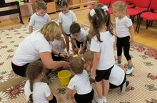 11 октября в средней группе прошло музыкальное развлечение «Огородная семейка». Дети отгадывали загадки и играли в игры: «Быстро возьми», «Посади и собери урожай!», «Разгрузи машину», «Пугало и зайцы».