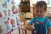 24 и 25 июля в рамках тематической недели изобразительного искусства, дети младшей группы знакомились с дымковской игрушкой. Ребятам было интересно, из чего же сделаны игрушки? Дети узнали, что игрушки делают из глины, сушат их, затем обжигают в печи, чтобы глина стала крепкой. Затем игрушку белят мелом, разведённым на молоке, а уже потом раскрашивают красками. На другой день нашего занятия мы с ребятами разукрашивали лошадок красками. Дети с увлечением были заняты делом.