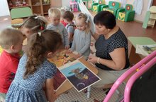 Дети второй младшей группы познакомились с народным художником Е.М.Рачёвым, который рисует иллюстрации к русским народным сказкам. Раньше сказки рассказывали бабушки, а теперь все больше книжка сказку рассказывает. Да не просто книжка - а книжка с картинками. Послушает ребенок сказку, а потом картинку смотрит. Очень интересно смотреть картинки. Даже не знаешь, что - интереснее картинки смотреть или сказки слушать. Но в этот раз несмотря на свой возраст дети меня просто поразили своим умением рассказывать сказки. Они рассказывали с выражением, меняя голос, изображая мимикой. Молодцы, ребятки!
