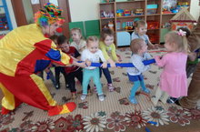 19 апреля в младшей группе прошло развлечение «Веселый клоун». В гости к ребятам приходили сказочные герои: Клоун и Мишутка. Дети преодолевали различные препятствия: «Пройди по кочкам», «Полоса препятствий», также играли в подвижные игры: «У медведя во бору», «Найди свой домик» и другие. Дети получили большое удовольствия от путешествия по лесу.