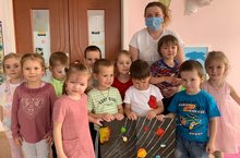 День космонавтики – важное событие в жизни нашей страны, и об этом должны знать дети. Очень важно привить детям чувство гордости и уважения к своей стране, её культуре, осознание личной причастности к жизни Родины. Тема космоса всегда интересна детям, поэтому и мы не могли обойти ее стороной. Воспитанники познакомились с информацией о первом полёте человека в космос, о планетах Солнечной системы, о Вселенной. Вместе с детьми изготовили коллективную работу «Планеты и космос». Работа получилась яркой, а дети узнали много новой и интересной информации.