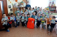 К ребятам подготовительной группы приходил старший государственный инспектор Камско-Устьинского инспекторского участка Центра ГИМС ГУ МЧС России по Республике Татарстан Ананьев А. В. Он провел профилактическую беседу по «Правилам безопасного поведения на воде». Показал видео сюжеты «Способы спасения при провале под лед», «Спасение при помощи судна на воздушной подушке (Хивус)». Принес детям настоящий спасательный жилет и Конец Александрова. В конце беседы подарил всем детям памятку «Как вести себя на воде».