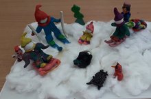Какая прекрасная пора-зима! Но только зимой мы катаемся на коньках,бегаем на лыжах, играем в снежки и лепим снеговиков и снежные крепости. Дети средней-старшей группы решили передать всю прелесть этих зимних забав, используя, пластилин и чуточку фантазии. Фигурки получились очень забавными. Каждый постарался отобразить в своей работе что-то свое добавить какой- то элемент.