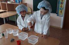 -масло не растворяется в воде, плавает в виде желтых капелек или растекается по ее поверхности тонкой пленкой.День завершился просмотром позновательного мультфильма "Фиксики о воде"