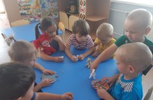А наше лето продолжается! И сегодня наш день был посвящён глине. С самого утра мы решили рассмотреть игрушки в группе. И оказалось, что некоторые из них сделаны из глины. И тогда мы с ребятами подумали, а сможем ли мы сами сделать игрушки из глины. Но это оказалось совсем непросто для наших малышей. Сравнив глину и песок, мы подчеркнули, что глина твёрдая, а песок мягкий и сыпучий. Мы пришли к выводу, что игрушки из глины прочнее, но из песка лепить всё-таки легче. А также мы рассмотрели альбом с изображениями глиняных игрушек.
