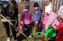 На прилегающей к детскому саду территории было высажено более 15 молодых елей.