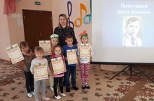 Сегодня в МБДОУ «Детский сад "Колосок" прошла встреча в Литературной гостиной «По страницам великой жизни», посвященная 113-летию со дня рождения советского татарского поэта и Героя Советского союза Мусы Джалиля. Цель мероприятия - познакомить детей с творчеством татарского поэта Мусы Джалиля, рассказать об интересных фактах из его биографии, воспитывать любовь к татарской национальной культуре, патриотические чувства. На мероприятии воспитатель по обучению татарскому языку Загфарова А.Ш. познакомила детей с основными фактами жизни и творчества Мусы Джалиля. Ребята перечислили знакомые им объекты культуры, названные в честь поэта-героя. Затем дети читали стихотворения поэта: «Красная ромашка», «Случай в подъезде», «Храбрый заяц», «Гөлләрем». А в завершениимероприятия воспитанники были награждены грамотами за победу и участие в муниципальном этапе IМеждународного литературного конкурса чтецов «Джалиловские чтения».