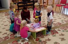 19 сентября во второй младшей группе прошло музыкальное развлечение «Дочка моя куколка». Под музыку Е. Тиличеевой «Кукла шагает и бегает» будили куколку. С задором учили куклу Катю танцевать (Е. Тиличеева «Да-да-да»), кормили Катюшу под песню «Каша» Л. Абелян и укладывали куклу опять спать под «Колыбельную» мелодию. Дети были в роли взрослых и им это очень понравилось.