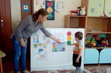 Сегодня в рамках долгосрочного проекта «Путешествие в страну Светофорика», дети младшей группы снова встретились с главным героем дороги - Светофориком. Посмотрев презентацию, сюжетные картинки, дети закрепляли знания о значении светофора и его сигналах. А герои мультфильма «Смешарики» помогли ребятишкам повторить правила поведения на улицах. Итогом сегодняшнего дня стало рисование веселого светофорика.