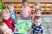 Сегодня воспитанники раннего возраста изготовили коллективную открытку "Елочка - красавица!". Дети с большим удовольствием рисовали ладошками и украшали елочку шариками из своих фотографий.