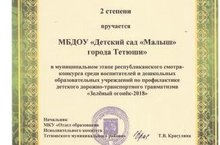 Наш детский сад принял участие в муниципальном этапе республиканского смотра-конкурса среди воспитателей и дошкольных образовательных учреждений по профилактике детского дорожно-транспортного травматизма «Зелёный огонёк-2018» и занял 2 место.