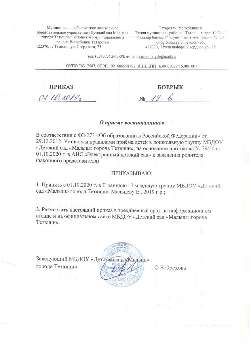 | Короткое название: | МБДОУ «Детский сад «Малыш» города Тетюши» |