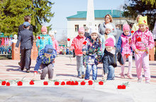 У Монумента Славы участники автопробега сделали остановку, где вместе с учащимися школ города и трудовыми коллективами приняли участие в торжественном митинге.