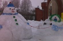 Педагоги нашего дошкольного образовательного учреждения творчески подходят к процессу лепки фигур из снега.