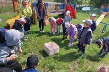 Наконец то выглянуло солнышко, дождик убежал за облака и наши детки старшего возраста отправились " В гости к ЛЕСОВИЧКУ". Маленькое путешествие было познавательным и увлекательным. Ребята, по дороге в лес преодолевали " туристические препятствия". Повторили правила поведения в лесу. Отгадывали лесные загадки. Очистили от принесенного ветром мусора лесные тропинки. Встретившись с Лесовичком поиграли в интересные познавательные игры,провели самомассаж сосновыми шишками, упражнялись в метании. А ещё, по инструкции Лесовичка отыскали витаминный сюрприз. Встреча состоялась увлекательной и познавательной.