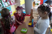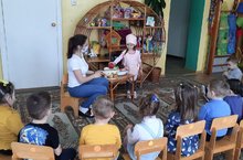 С доктором Ульяной дети лечили куклу Катю, с поваром Дашей поиграли в интересную игру "Из чего мы сварим суп", а водители Саша и Артем прокатили детей по городу