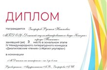 Поздравляем воспитанника старшей группы 2 Загфарова Рустема (руководители Абдурахманова А.В., Загфарова А.Ш.) с 3 местом в зональном этапе IV Международного литературного конкурса "Джалиловские чтения