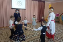 На этой неделе в гости к детям приходила кукла чувашской национальности. Дети узнали, что головной убор, называется хушпу. Он тяжёлый, т. к украшен монетами.Его надевали гости (женщины) на свадьбу.