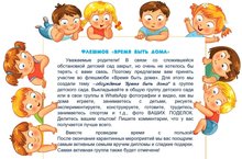 Уважаемые родители!В связи со сложившейся обстановкой детский сад закрыт, но очень не хотелось бы терять с вами связь. Поэтому предлагаем принять участие во флешмобе "Время быть дома".