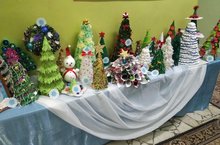 В детском саду «Сказка» прошел ежегодный конкурс творческих работ из бросового материала «Ёлочка, живи» среди семей воспитанников. Целью данного конкурса является привлечение внимания к проблеме вырубки елей и проблеме вторичного использования бросового материала. Родители творчески подошли к изготовлению ёлочек, проявили фантазию и мастерство. Ёлочки получились самые разнообразные: из фантиков, ниток, макулатуры, металлических элементов, пластиковой посуды, остатков ткани, из старого лего, яичных лотков и многого другого бросового материала. Всего на конкурс поступило 68 работ. Но конкурс есть конкурс. Жюри определило победителей и призеров в различных номинациях.
