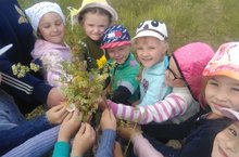 Балалар көн саен әйләнә-тирә дөньяның яңадан - яңа серләрен ача. Менә бүген дә өлкән төркем балалары тәрбияче Арсеньева Татьяна Владимировна белән шәһәрнең көньяк микрорайонындагы болынга яңа белемнәр эзләргә киттеләр. Чын бинокль ярдәмендә эзләнүләр бик кызыклы үтте! Балалар болында үзләренә таныш булган тычкан борчагын, ак чәчәк һ.б.ш. үсемлекләрне бик тиз таптылар. Тик Татьяна Владимировна алардан таныш булмаган чәчәкләр һәм үләннәргә игътибар итүләрен сорады. Шулай итеп, балалар «әтәч яки тавык» дип уйнаган үләннең мәтлек дип аталуын, канәфер чәчәгенең болында да үсүен, цикорийның – дару үләннәре булуын белделәр." Тасвирлау буенча үсемлекне тап” уены күңелле һәм кызыклы үтте. Экскурсия ахырында балалар тәрбияче белән берлектә төркем гербарие өчен үләннәр һәм чәчәкләр җыйдылар.