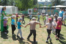 В детском саду «Сказка» воспитателем Янгельдиной А.С. для детей младшего дошкольного возраста было проведено развлечение «Здравствуй лето, здравствуй солнце!». Особую радость доставило Солнышко – главный герой этого мероприятия. Хороший эмоциональный настрой подарили детям музыкальные хороводные игры «Солнышко лучистое!», «Горячее солнышко», «Солнышко и дождик». А какой азарт и заряд бодрости получили дети, участвуя в играх «Кто быстрее выложит солнышко?», «Загорай, но не сгори». Праздник завершился задорным, веселым танцем с Солнышком . Каждый участник праздника получил медаль в виде солнышка.