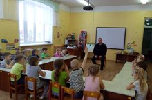 Для воспитанников старшей группы МБДОУ «Детский сад комбинированного вида «Сказка» города Тетюши» сотрудник УУП ОМВД России по Тетюшскому району капитан полиции Мельников Дмитрий Юрьевич провёл информационную беседу о правилах дорожного движения, поговорил с детьми о правилах перехода через дорогу и сигналах светофора, дорожной разметке, рассказал о пользе световозвращающих элементов на одежде в темное время суток. В конце встречи Дмитрий Юрьевич вручил каждому ребенку фликеры и подарил группе познавательную литературу по ПДД.
