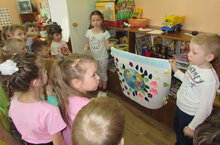 Ребята агитбригады «Эколадушки» подготовительной группы детского сада «Сказка» выступили с инсценировкой экологической сказки «Приключения Колобка» в детском саду «Малыш», где показали, что может случиться с природой, если мы не перестанем плохо с ней обращаться. Данное мероприятие проходило в рамках Международной программы «Эко-школы/Зеленый флаг».