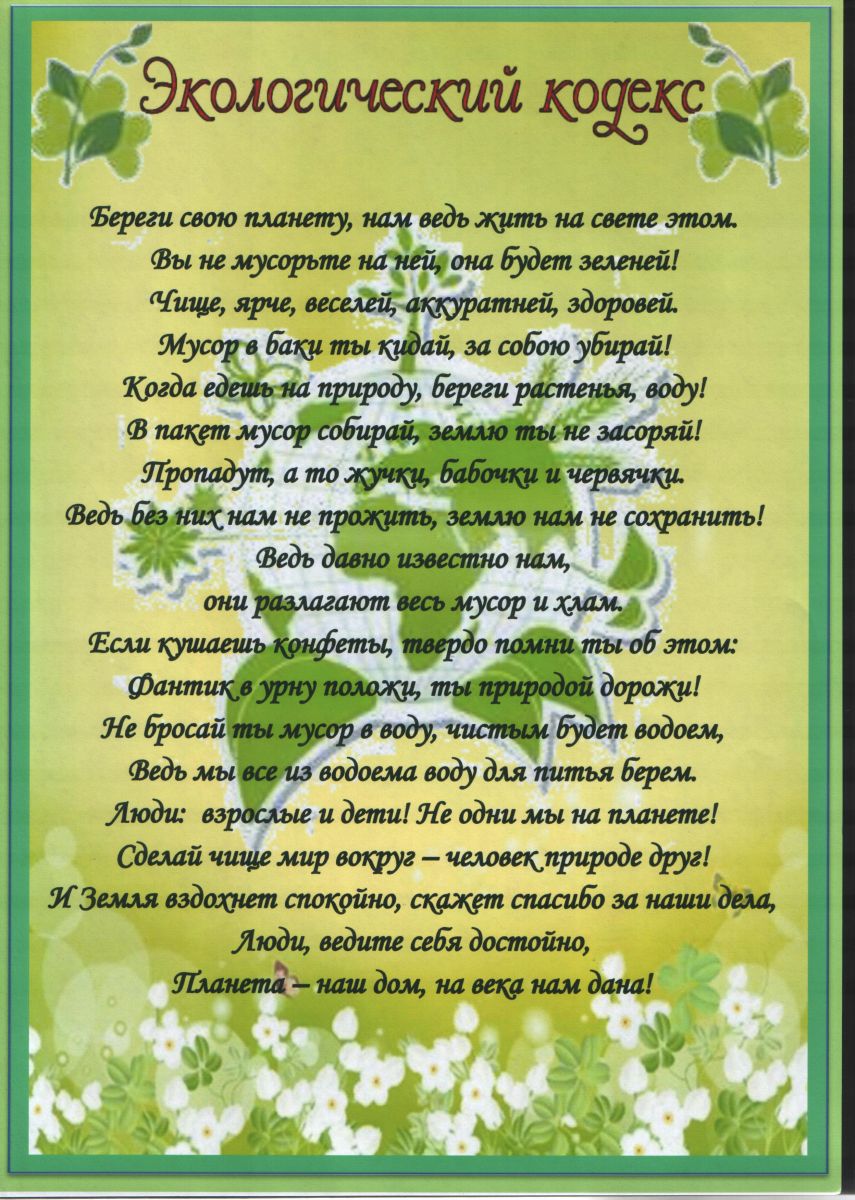 Экологический кодекс МБДОУ "Детский сад комбинированного вида "Сказка" города Тетюши"