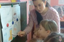 Познавательно-исследовательское занятие «День космонавтики в детском саду» прошло в форме космического путешествия. Воспитатель Нестерова А.А.предложила детям стать космонавтами, и они охотно согласились. Ребята с интересом посмотрели эксперимент, когда «космическая ракета» на примере воздушного шарика, стремительно взлетает ввысь, а затем старательно строили ракету из геометрических фигур. Сплочённость экипажей «космических кораблей» «Восток» и «Молния» показали дети, выполняя задания по построению и приземлению.