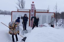 Наши учащиеся постоянно следят за состоянием территории возле памятника погибшим землякам. После снегопада ребята помогают убрать снег с дорожек, подметают. Учащиеся работают дружно, всегда сами активно проявляют инициативу.