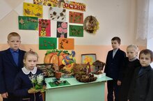 Учащиеся школы вместе с родителями организовали выставку работ "Золотая осень". Дети появили фантазию и мастерство, используя природный материал, пластилин и краски.