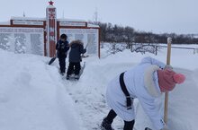 В рамках акции была организована уборка от снега памятника землякам, воевавшим в годы Великой Отечественной войны и возложение цветов.