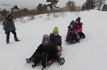 Сегодня с детьми ходили кататься на горку, устраивали небольшие соревнования.