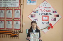 Ученица 4 класса, Кулумбегова Ирина, получила благодарность за участие в конкурсе чтецов "Цена Победы".