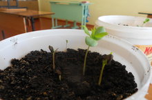 С каждым днём увеличиваются росточки будущего сада к 70-летию Победы. Ребята бережно ухаживают за ними.