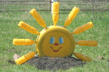 Сегодня у нас около школы появилось солнышко. Оно очень весёлое и улыбается всем прохожим.
