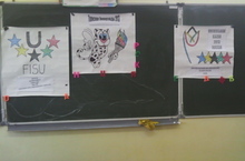 Проведён урок Универсиады. Дети познакомились с талисманом казанской Универсиады - Юни, котёнком крылатого снежного барса, эмблемой Универсиады. Оформлен стенд. Так же дети посмотрели мультфильм " Юни - кросс", отгадывали загадки о видах спорта. Детям очень понравилось.