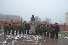 Затем сотрудники музея и кадеты посетили музей Кадетской Славы. Завершился урок мужества возложением цветов к бюсту Хапаева В.А.