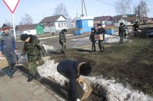 Ударно поработал 8 апреля «трудовой десант» 5-6 классов под руководством воспитателя Вериялова В.Г. на субботнике. Кадеты собрали мусор, который в большом количестве появился после зимы. Местами снег еще не растаял, поэтому пришлось его раскидывать, а с южной стороны здания уже можно было поработать граблями и метлами.