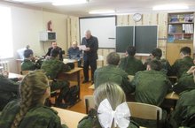 В рамках месячника оборонно-массовой и спортивно-оздоровительной работы, с целью профориентации в Тетюшской кадетской школе-интернате 18 февраля состоялась встреча председателя Совета ветеранов МВД Краюшкина Владимира Алексеевича, ветерана МВД Матаева Олега Александровича и начальника вневедомственной охраны Биктагирова Рината Гумеровича с воспитанниками 9 и 11 классов.