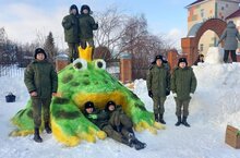 По сложившейся традиции кадеты 10 класса (воспитатель Вериялов В.Г.) приняли участие в создании снежной фигуры. На территории снежного городка красуется Царевна-лягушка, радуя детей ивзрослых.
