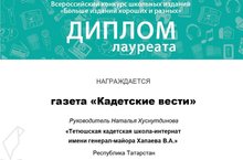 Школьная газета «Кадетские вести» в этом году стала лауреатом печатного турнира детско-юношеских СМИ в открытом Всероссийском конкурсе школьных изданий.
